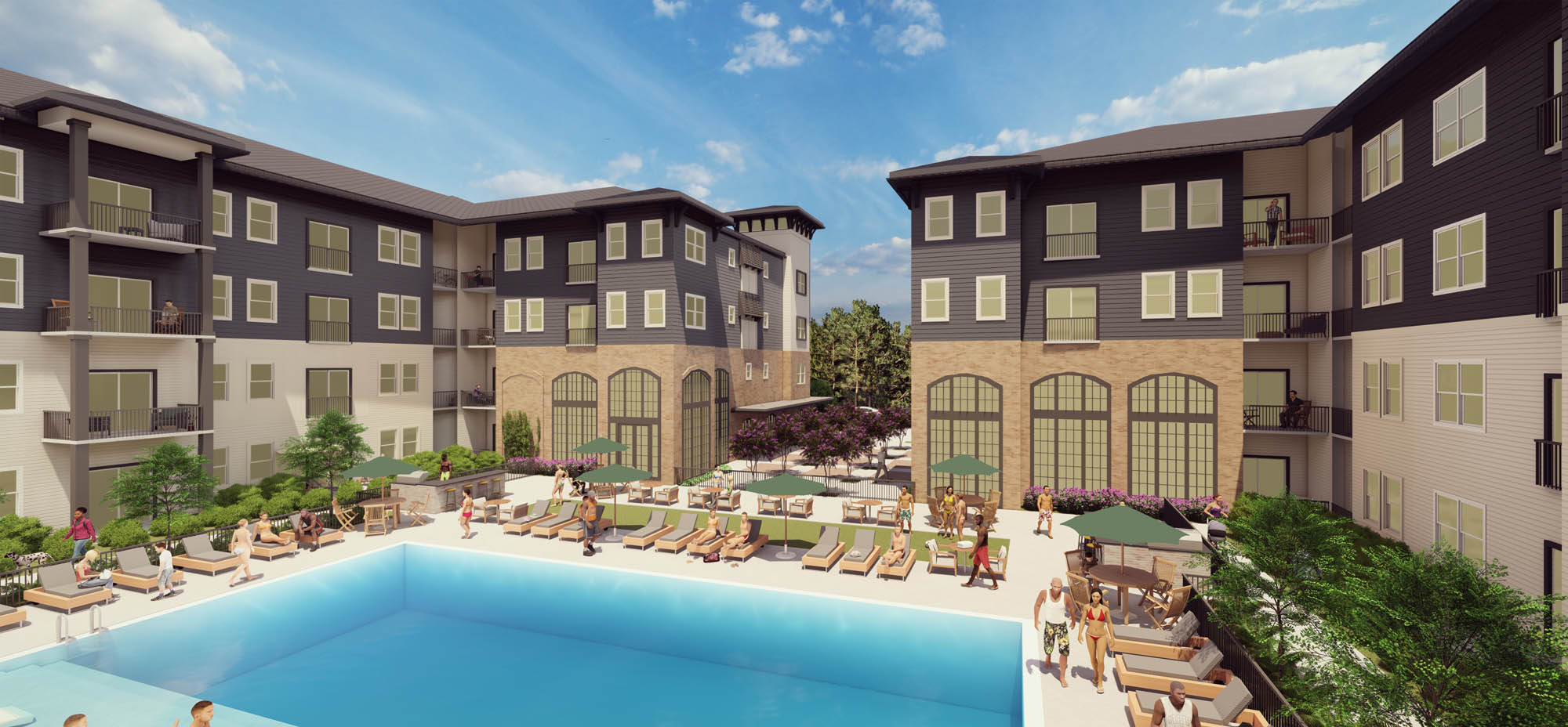 We assisted with development and construction, bank draws, renderings, equity financing, quarterly investor reports, and exterior material selection. We also hand-drew the arched windows in the amenity spaces.